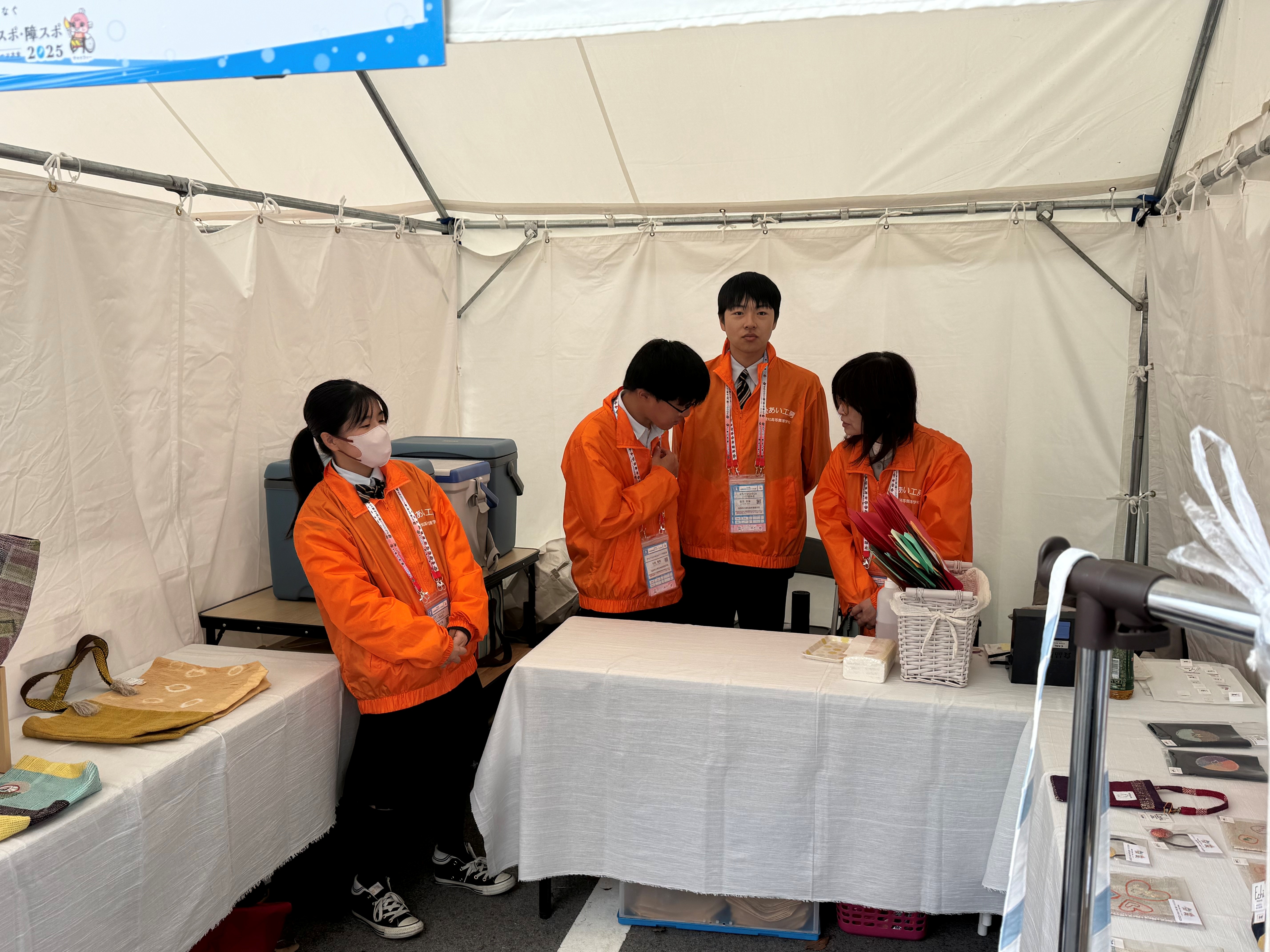 おもてなSHIGAエリアのブースでは、本校の生徒が接客を行い、前日から準備した300個のパンも早々に売り切れました。テキスタイルの手織りの麻製品、縫製製品も大変好評で、盛況のうちに終えることができました。このような大きな規模のイベントで、生徒たちの日ごろの学習の成果がたくさんの人の目に触れることができ、大変嬉しく思います。接客を務めた生徒たちにとっても、貴重な機会になったのではないでしょうか。